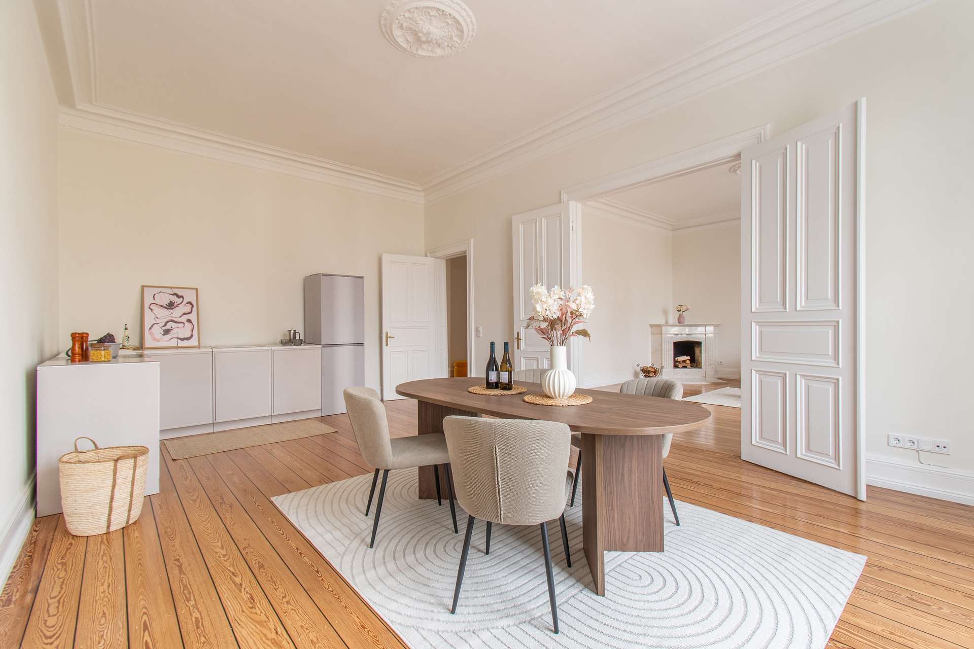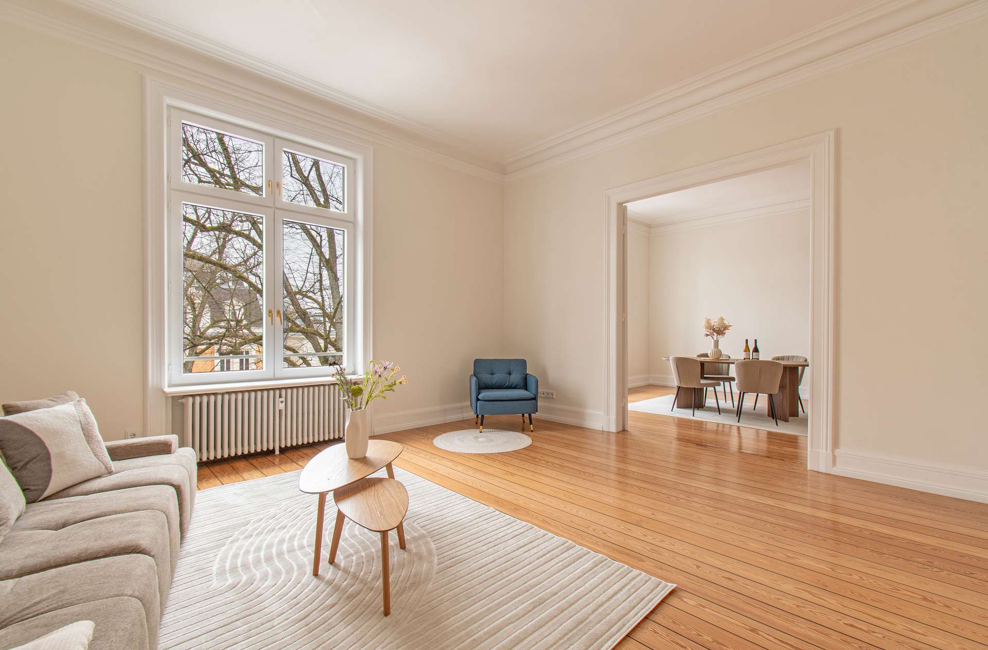In einer der schönsten Stadtvillen Harvestehudes – im repräsentativen Frauenthal – befindet sich diese außergewöhnliche Wohnung mit ca. 168 m² Wohnfläche. Die repräsentative Villa aus der Jahrhundertwende verbindet hanseatische Eleganz mit modernem Wohnkomfort und bietet ein Zuhause, das gleichermaßen stilvoll wie funktional ist. Die Wohnung begeistert mit einem großzügigen, klar strukturierten Grundriss, hohen Decken und lichtdurchfluteten Räumen. Im Zentrum steht der weitläufige Wohn- und Essbereich, der durch seine Offenheit zum Herzstück der Wohnung wird. Hier besteht die Möglichkeit, eine moderne Küche zu integrieren – perfekt für ein kommunikatives Wohnkonzept. Von hier aus führt der Zugang auf die sonnige, nach Süden ausgerichtete Terrasse, die sich als erweiterter Wohnraum im Freien nutzen lässt. Sie bietet Raum für entspannte Stunden im Grünen und unterstreicht den exklusiven Charakter der Wohnung. Ein besonderes Highlight: In den Wintermonaten, wenn die Bäume ihre Blätter verlieren, eröffnet sich von hier aus ein einzigartiger Blick auf die Alster – der sogenannte „Alster-Winterblick“, der diese Lage zu etwas ganz Besonderem macht. Der Grundriss eröffnet zudem die Option, zwei komfortable Schlafzimmer zu gestalten – eines davon mit begehbarer Ankleide und direktem Zugang zur Terrasse, das andere mit einem Bad en Suite. Ein separates Gäste-WC sowie ein großzügiger Hauswirtschaftsraum bieten zusätzlichen Komfort und durchdachte Funktionalität. Abgerundet wird das Wohnkonzept durch klassische Altbaudetails wie den originalen Pitch-Pine-Dielenboden und einen stilvollen Kamin, die den Räumen eine unverwechselbare Atmosphäre verleihen. Diese Wohnung ist ein seltenes Angebot: großzügig, hell, wandelbar in der Nutzung und eingebettet in die hanseatische Noblesse Harvestehudes – eine exklusive Gelegenheit für stilbewusstes Wohnen in einer der besten Adressen Hamburgs. Optional besteht die Möglichkeit, im selben Haus zusätzlich eine Souterrain-Wohnung zu erwerben. Diese eignet sich ideal als separater Arbeitsbereich, für ein Au-pair oder für vielfältige weitere Nutzungsmöglichkeiten. Bei Interesse sprechen Sie uns gerne an.