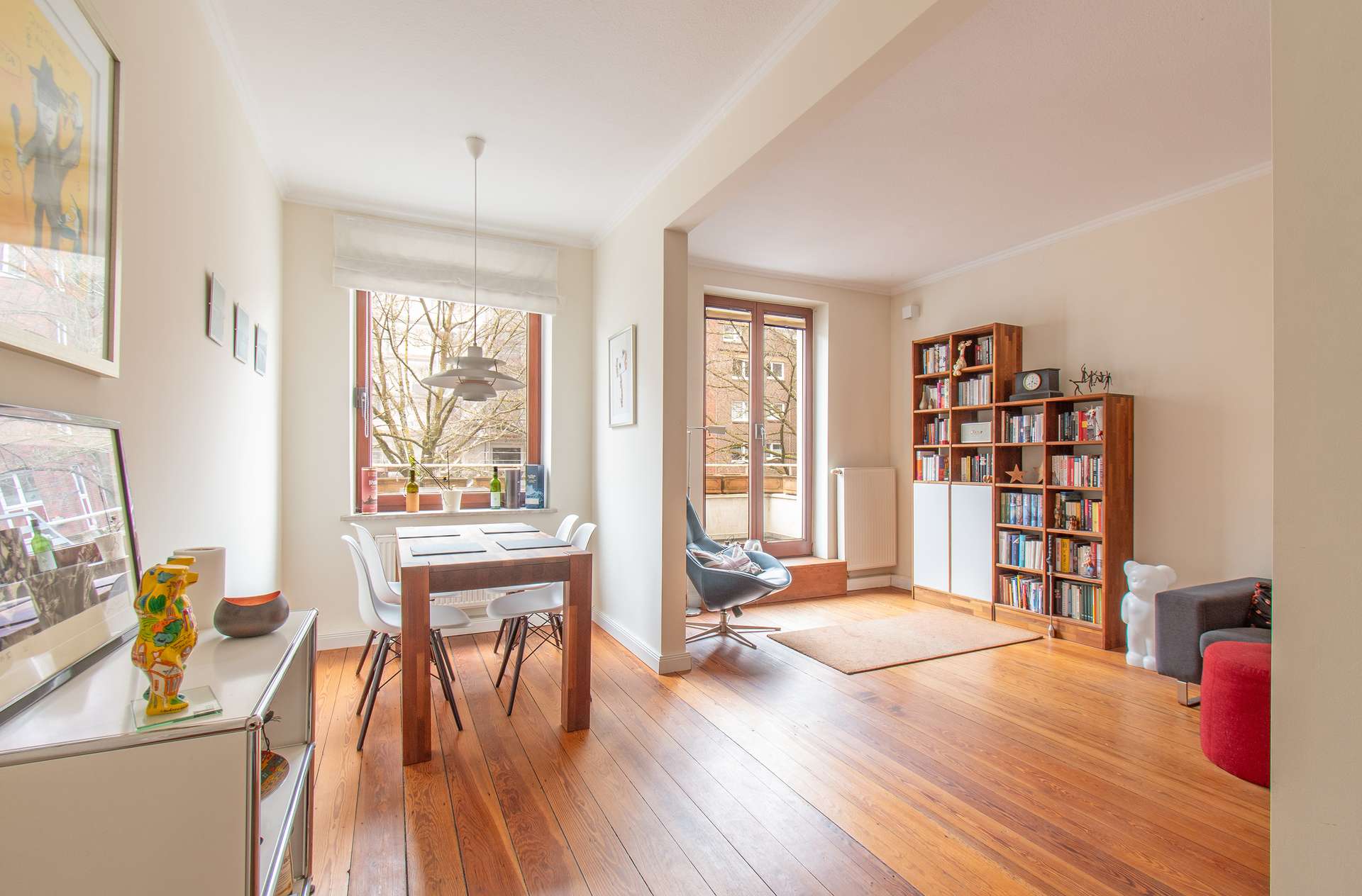 Diese charmante 3-Zimmer-Wohnung befindet sich im 1. Obergeschoss eines äußerst gepflegten Mehrfamilienhauses in begehrter Lage von Winterhude und überzeugt durch ihr besonderes Wohnambiente sowie eine durchdachte Raumaufteilung auf ca. 84 m² Wohnfläche. Beim Betreten der Wohnung empfängt Sie eine freundliche und helle Atmosphäre, die sich durch sämtliche Räume zieht. Große Fensterflächen sorgen für eine hervorragende Belichtung und unterstreichen das angenehme Wohngefühl. Der klassische Altbaucharme wird durch hohe Decken und stilvolle Dielenböden eindrucksvoll hervorgehoben und verleiht der Wohnung eine warme, einladende Ausstrahlung. Die Wohnung verfügt über insgesamt drei gut geschnittene Zimmer, darunter zwei komfortable Schlafzimmer sowie ein großzügiger Wohnbereich, der vielseitige Gestaltungsmöglichkeiten bietet. Die separate Küche bietet neben ausreichend Platz zum Kochen auch einen kleinen, gemütlichen Essbereich. Ein weiteres Highlight der Wohnung ist der großzügige, sonnige Balkon, der nach Südwesten ausgerichtet ist und ideale Bedingungen für entspannte Stunden im Freien bietet. Das Badezimmer ist mit einem Fenster sowie einer Dusche ausgestattet und sorgt für eine angenehme Belüftung und Tageslicht. Ergänzend steht ein separates WC zur Verfügung, was zusätzlichen Komfort im Alltag bietet. Abgerundet wird dieses attraktive Angebot durch zwei zur Wohnung gehörenden Dachböden, die praktischen Stauraum bieten, sowie einen gemeinschaftlich nutzbaren Garten, der zum Entspannen im Grünen einlädt. Insgesamt handelt es sich um eine äußerst helle und stilvolle Wohnung mit viel Charme und einem hervorragenden Wohnambiente in einer der beliebtesten Lagen Hamburgs.